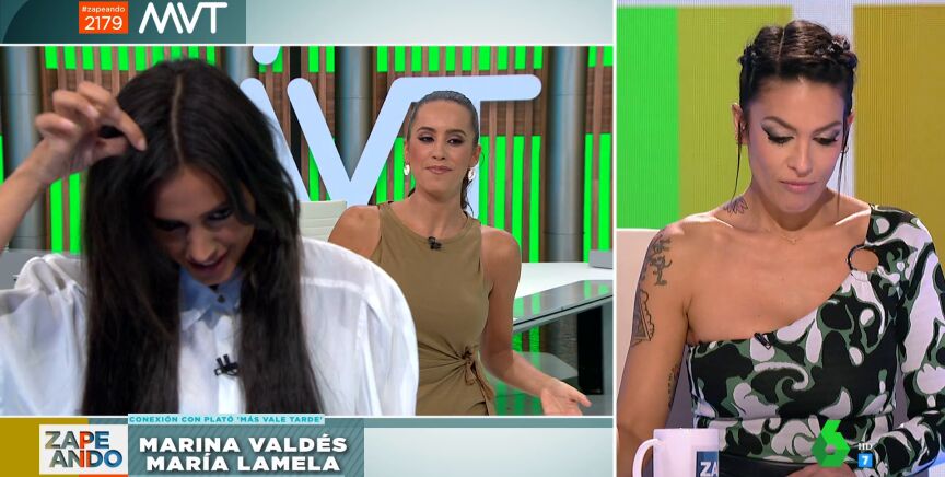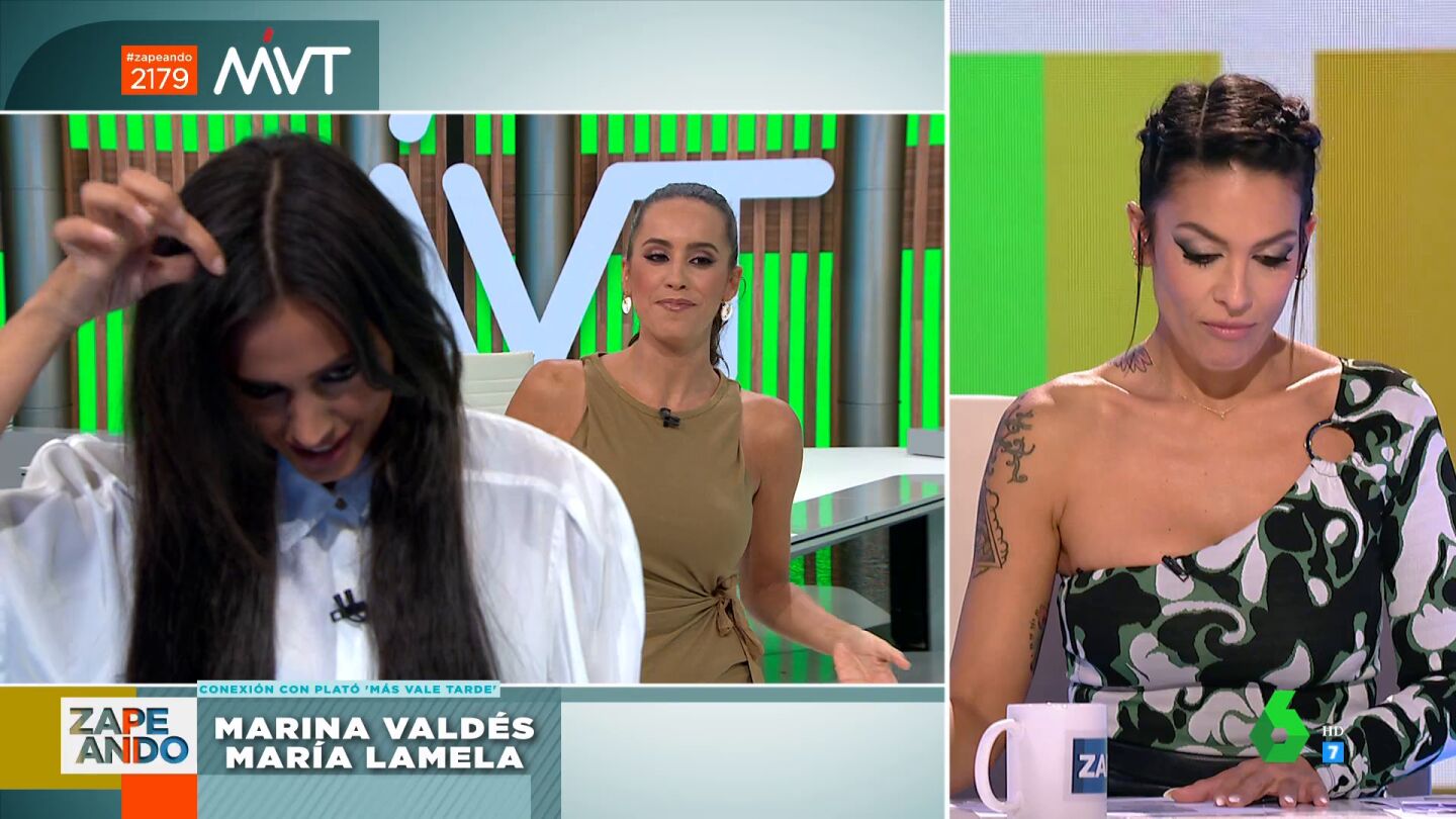 Antes de terminar el directo de Zapeando, Lorena Castell conecta con el plató de Más Vale Tarde, desde donde las presentadoras Marina Valdés y María Lamela explican los temas de los que hablarán en el programa. Por ejemplo, el despido de una presentadora de Canadá por no teñirse el pelo. La mujer llevaba al frente de un informativo de máxima audiencia 30 años.