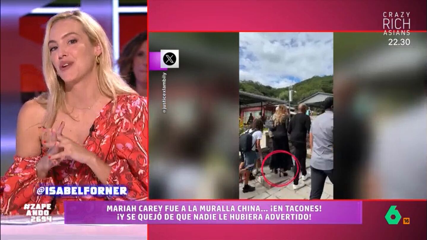 Carey ha compartido estas imágenes con sus seguidores en redes sociales. Sin embargo, un detalle ha llamado la atención: la artista visitó la Muralla China en tacones. En las imágenes del vídeo de Zapeando, se puede ver cómo Carey es ayudada por sus familiares, ya que le resulta difícil recorrer la zona en esos zapatos.