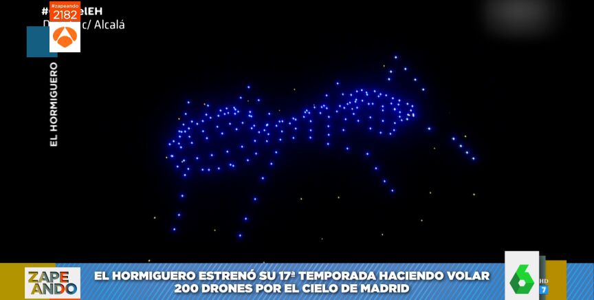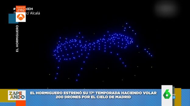 El Hormiguero ha estrenado este lunes su decimoséptima temporada haciendo volar 200 drones por el cielo de Madrid. Puedes ver el momentazo en este vídeo de Zapeando.