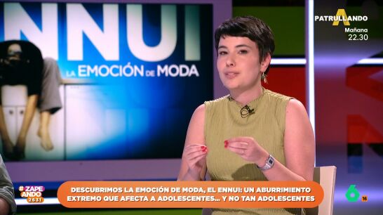 Asimismo, apunta que ennuí no es nada nuevo. "Antes, cuando te aburrías y eras adolescente, tus padres te decía que cogieses una bolsa de pipas y bajases al parque con los amigos. Entonces ahí, te vestías y hacías una serie de cosas", apunta la colaboradora.
