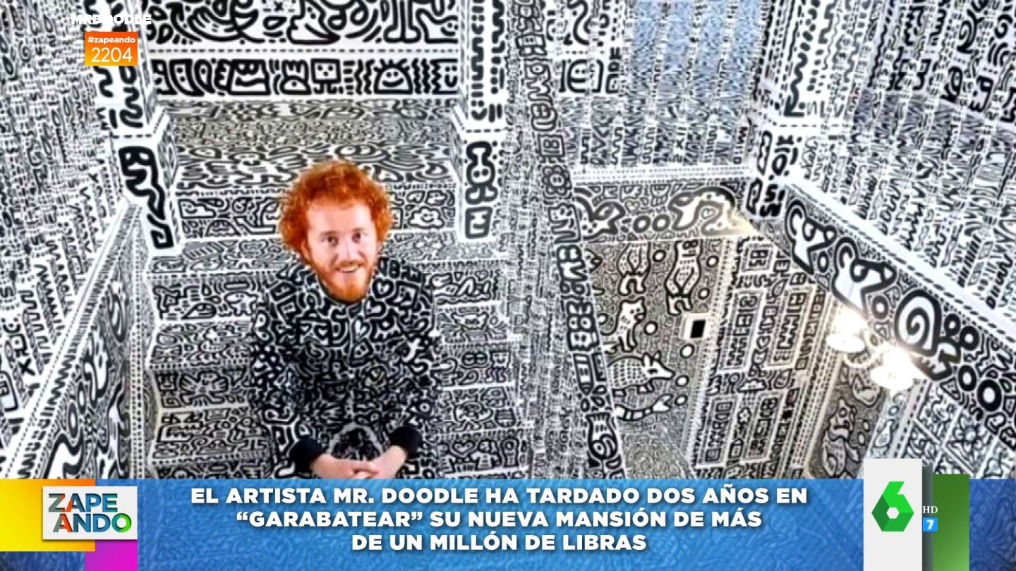 El artista Mr. Doodle se ha vuelto viral después de que haya garabateado toda su nueva mansión. Puedes ver el 'mareante' resultado final, que ha conseguido tras dos años, en este vídeo de Zapeando.