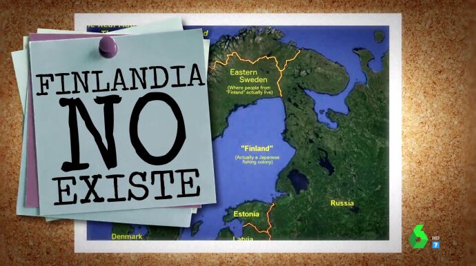 Según esta teoría, Finlandia es en realidad parte del Mar Báltico, donde Rusia permite pescar a Japón, que transporta el pescado hasta el país nipón camuflado como productos de Nokia. Además, los "negacionistas de Finlandia" sostienen que el resto de Europa sigue el juego a esta 'mentira' porque han convertido al país báltico en una "utopía". En el vídeo puedes ver la reacción de los zapeadores ante esta loca teoría y el "argumento definitivo" de por qué Finlandia es una invención.