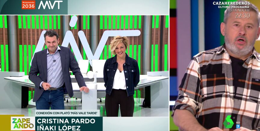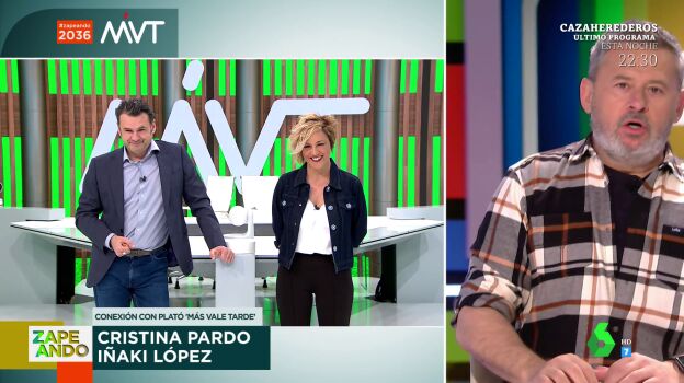 Antes de terminar Zapeando, Dani Mateo conecta en directo con el plató de Más Vale Tarde, donde sus presentadores, Iñaki López y Cristina Pardo, avanzan los temas de los que hablarán en el programa. Nada más aparecer en pantalla, Cristina Pardo manda un mensaje a Miki Nadal tras verle bailar una jota en plató: "Estoy rememorando mis orígenes con la jota de Miki, que yo sí me la sé".