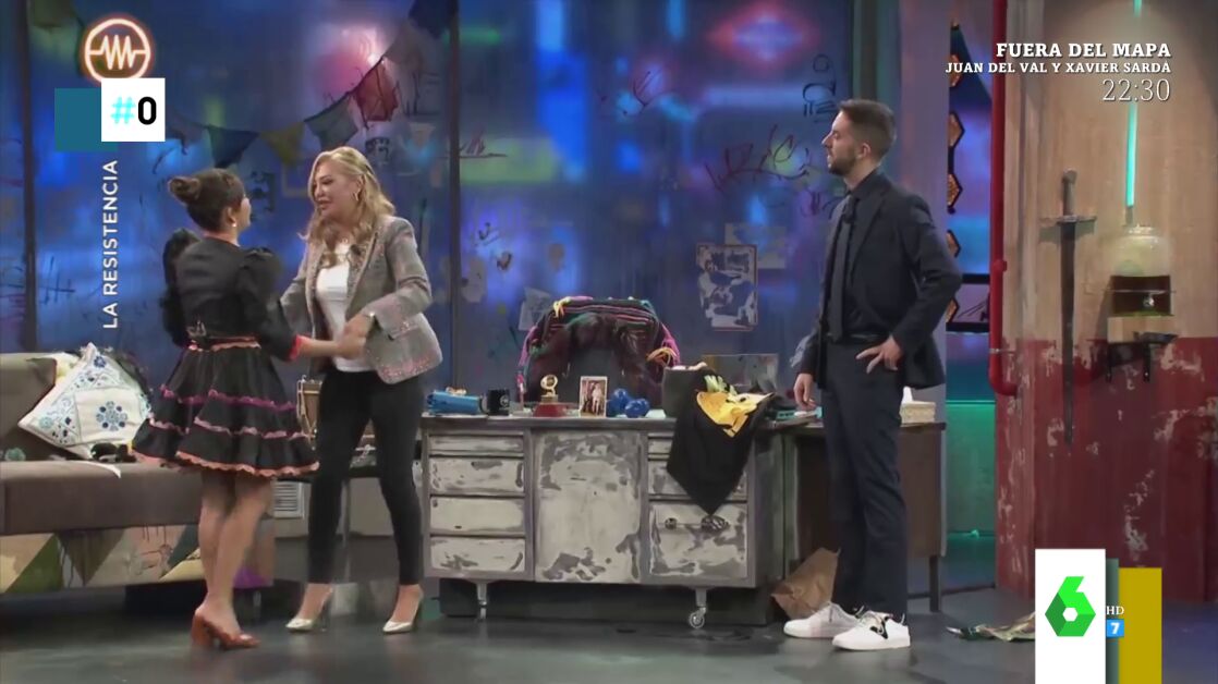 Belén Esteban, David Broncano y Candela Peña: así fue el divertido encuentro sorpresa en La Resistencia