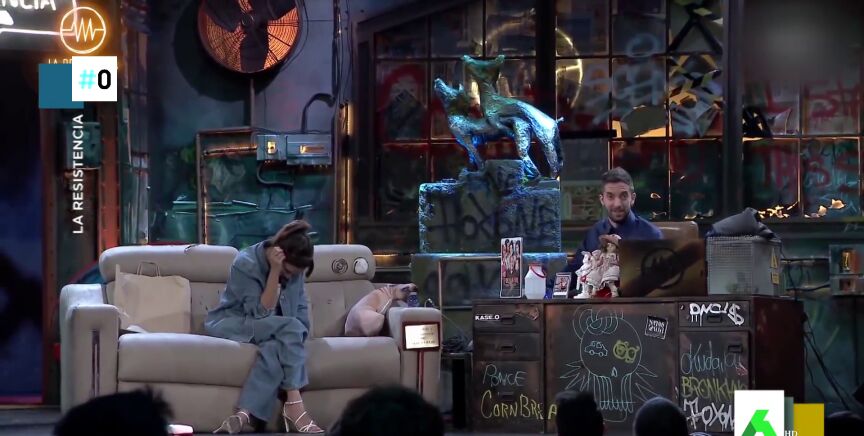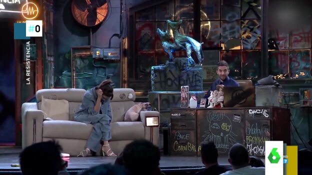 La invitada del programa, la atleta Belén Toimil, tumbó de un lanzamiento de peso la mítica fuente de perros de 'La Resistencia'. Así reaccionaba el presentador.