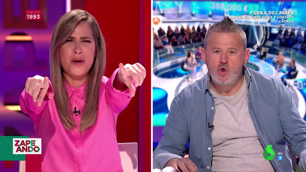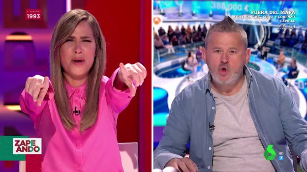 Una conversación con la que a Dani Mateo se le ocurre una idea: que la zapeadora cante a dúo con Miki Nadal imitando a John Legend. ¿La canción? 'Tutti frutti' de Elvis Presley. Puedes ver el cómico resultado en el vídeo principal de esta noticia.