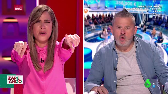 Dani Mateo pide a María Gómez que cante a dúo con Miki Nadal imitando a John Legend. ¿La canción? 'Tutti frutti' de Elvis Presley. Puedes ver el momentazo en el plató en este vídeo de Zapeando.