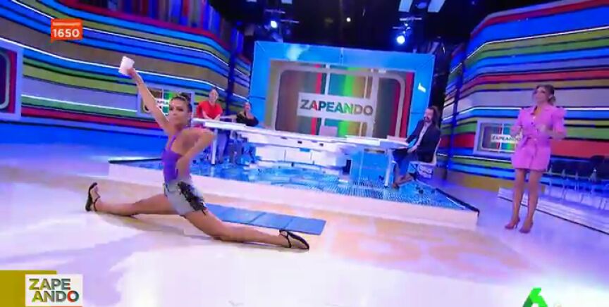 Castell ha preguntado a Pedroche si se atrevía a imitar el reto imposible de la modelo Jena Frumes, algo que la zapeadora no se ha pensado un segundo. Y, sorprendentemente, lo ha conseguido, aunque al segundo intento.