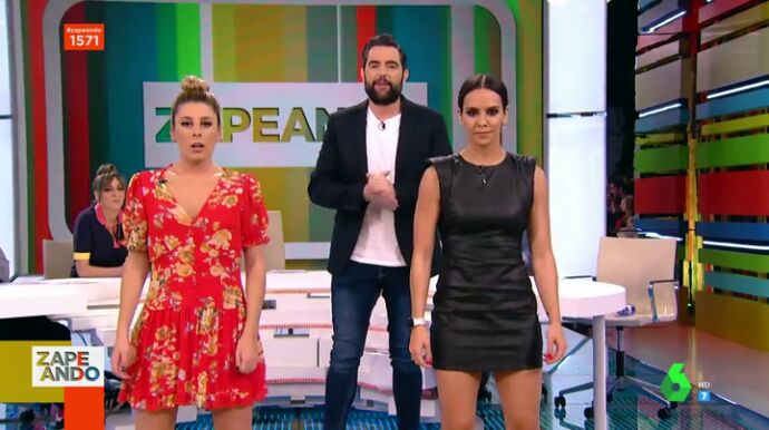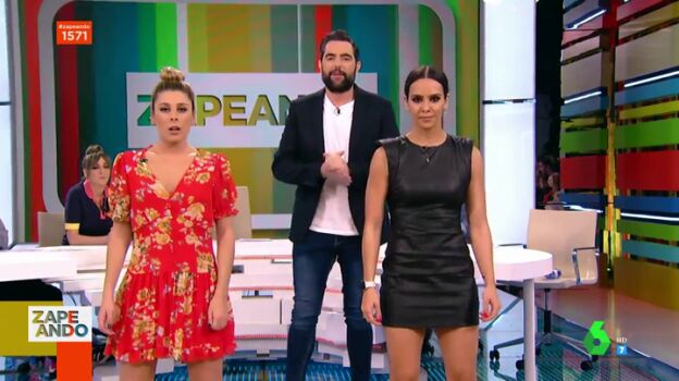 Cristina Pedroche, "la única que sabe bailar", según Dani Mateo, se anima a hacer el reto en directo. No lo hace sola, la zapeadora Valeria Ros, Dani Mateo y el propio Miki Nadal también se apuntan a seguir el ritmo. "¡Creo que se me han visto las bragas! Lo podéis buscar después en Atresplayer", bromea Pedroche tras terminar el baile.