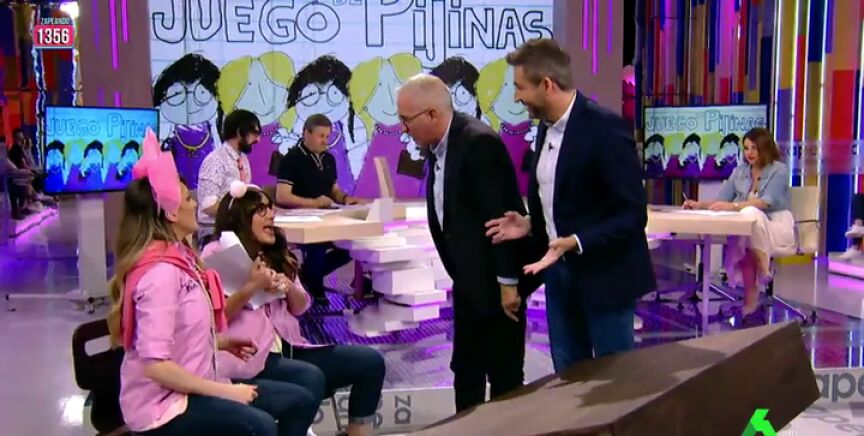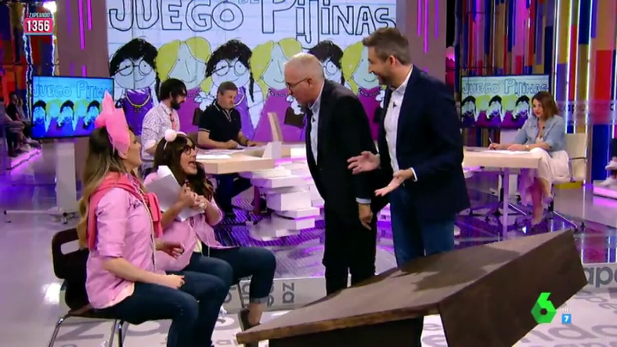 Anna Simon y Ana Morgade se convierten en 'Cuqui y Puchi' para competir contra Xavier Sardá y Frank Blanco en 'El juego de pijinas' de Zapeando. En este vídeo puedes ver el divertido momento.