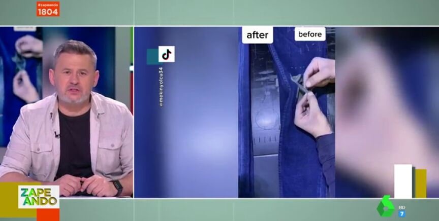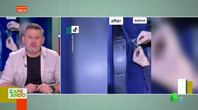 Se utiliza para dar ese efecto un láser, que rompe la tela, la quema y la deshilacha. Pero lo más curioso es cómo se maneja este láser. "Lo raro es que la persona que manipula la prenda conserve los diez dedos", asegura el zapeador. A Cristina Pedroche se le ocurre una manera casera para desgastar los vaqueros. En este vídeo puedes ver su consejo.