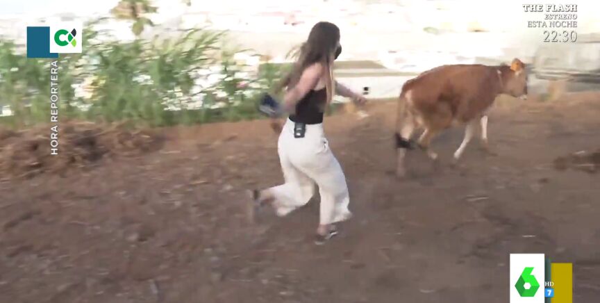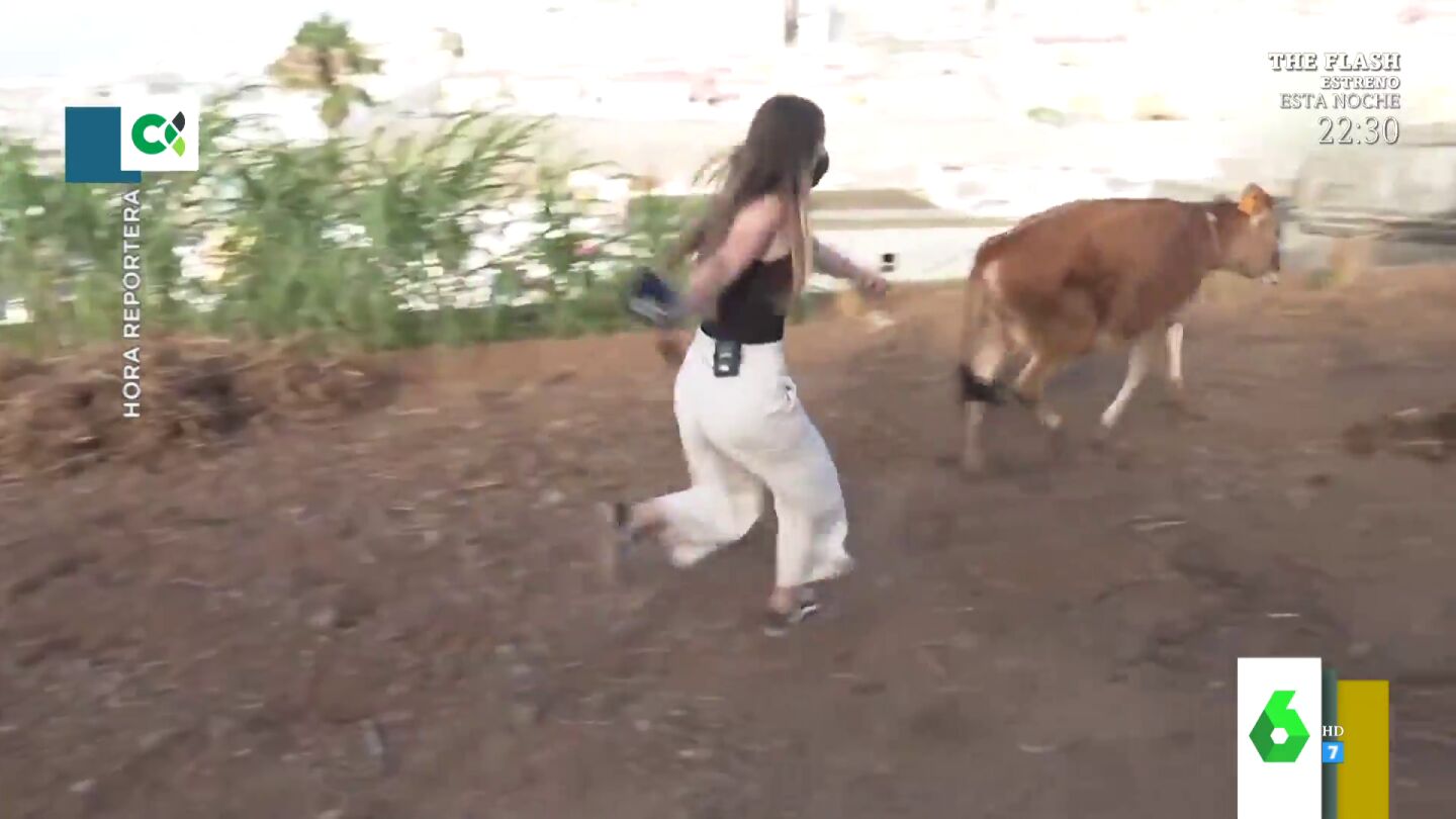 Llega el verano y con él los reportajes más frescos y risueños de los reporteros de televisión. Aunque en el reporterismo autonómico no todo es pasárselo bien, y si no que se lo digan a Elena, del programa canario 'Una hora menos', que hizo un reportaje con vacas y se llevó más de un susto, como se puede ver en el divertido vídeo que acompaña estas líneas.
