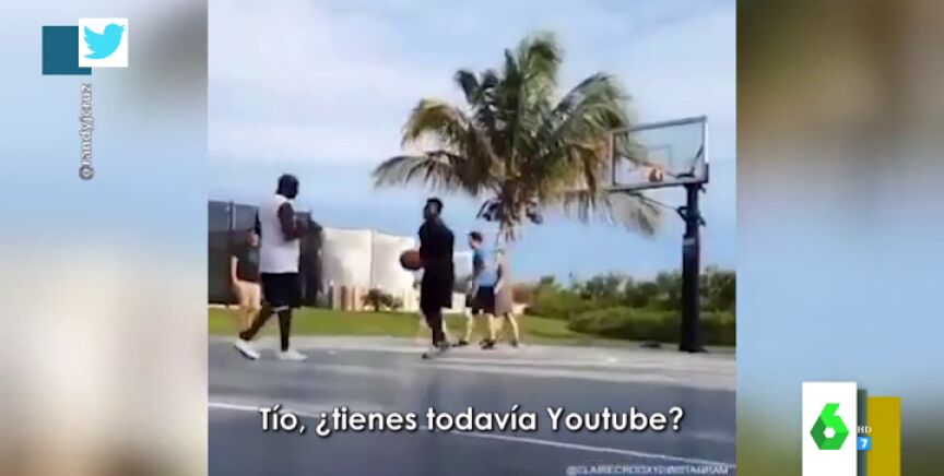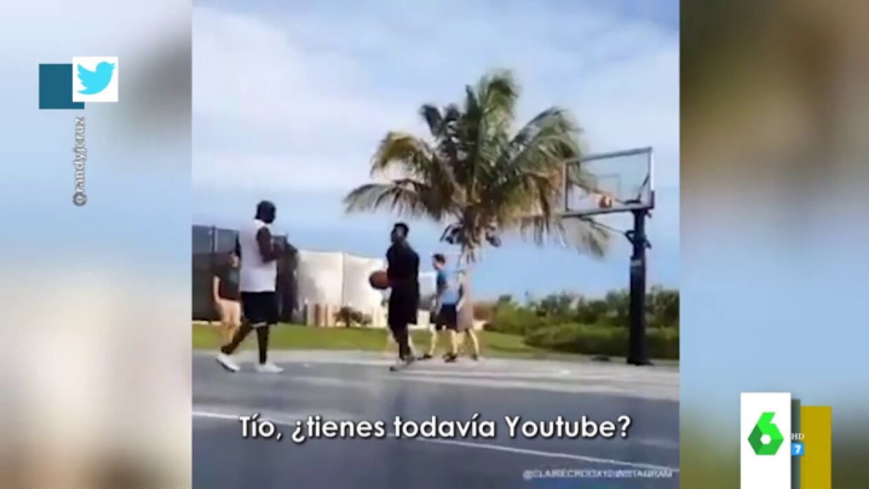 Para muestra, la presentadora del programa enseña un vídeo en el que aparece el exjugador de baloncesto jugando al deporte que le hizo famoso junto a varios amigos en una cancha. "Tío, ¿todavía tienes Youtube?, yo que tú buscaría Michael Jordan", bromea el famoso con uno de los presentes.