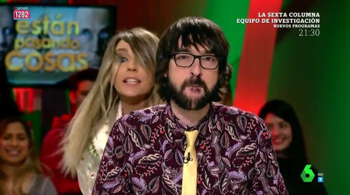 Anna Simon ha sorprendido a Quique Peinado al protagonizar una 'original' y espontánea cabecera de la sección del zapeador. Pero él, no ha reaccionado muy bien: "Voy a hacer como cuando Luis Fonsi bloquea la silla a Paulina Rubio en La Voz y no me voy a girar, Simon vuelve a tu sitio".