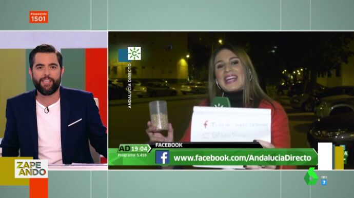 Cuando se habla de periodistas anónimos, no son solo aquellos de quienes no se conocen sus nombres, sino que en algunos casos, no se llega a ver ni siquiera su rostro. Es el caso de un periodista de 'Andalucía Directo' del que en una conexión en directo solo se vio su mano cogiendo un tarro de garbanzos.