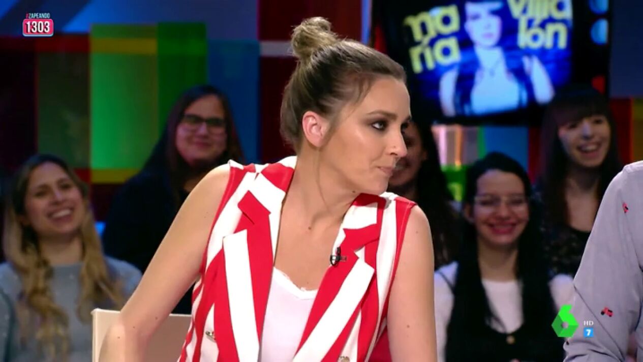 Anna Simon aparece en Zapeando con una camisa de rayas blancas y rojas, como la equipación del Atlético de Madrid. Un hecho que no ha pasado por alto para sus compañeros quienes recuerdan que el equipo perdió contra el Real Madrid este fin de semana.