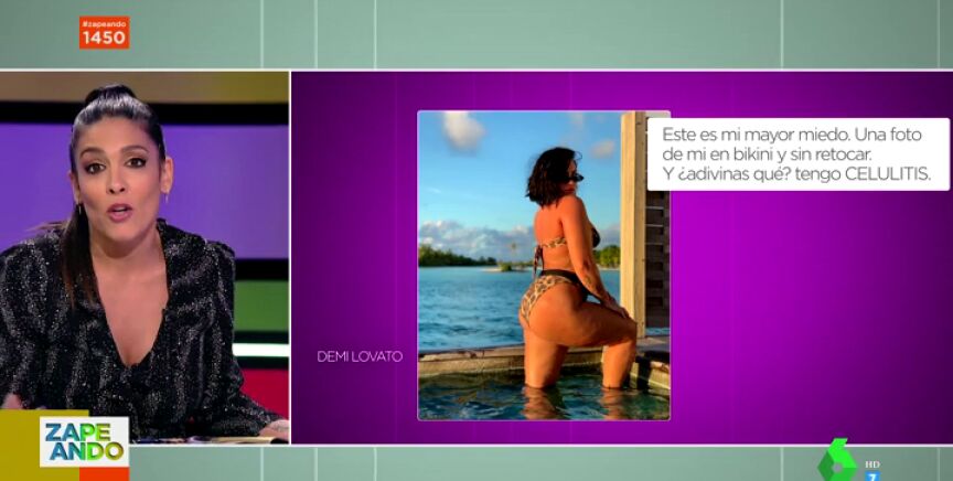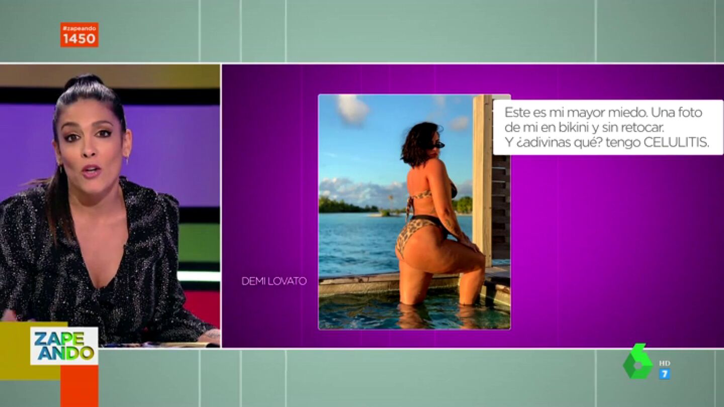 Después de que Demi Lovato haya levantado muchos comentarios tras una fotografía en Instagram en la que aparece en bikini mostrando su celulitis, Lorena Castell analiza la imagen en Zapeando. Y es que la zapeadora lamenta que haya críticas con cualquier imagen que se suba a la red social.