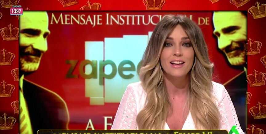 Esta vez, el mensaje institucional de Zapeando está dedicado a Felipe VI, quecelebra su quinto aniversario como rey. Anna Simon le ha querido felicitar por "cinco años de reinado, cinco años de contrato fijo, cotizando y en la misma empresa".