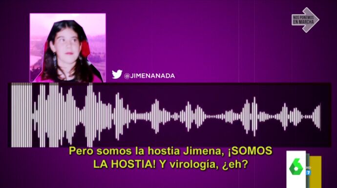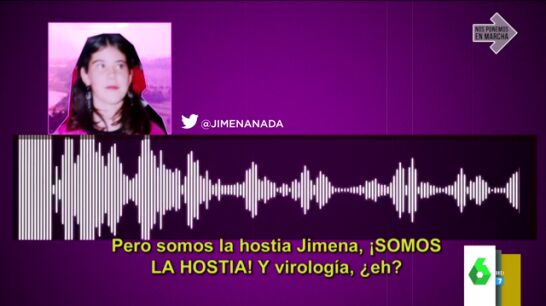 La sorpresa llegó cuando el mensaje del contestador lo había grabado ella misma hacía 19 años. Así que la joven aprovechó para mandarle un consejo a su yo del pasado. "Soy tu yo de dentro de 19 años", explica Jimena, que destaca que se deje de "aeronáutica, periodismo y demás gilipolleces": "Lo que tenemos que hacer es estudiar biología y especializarnos en virología para buscar la cura de la COVID-19".