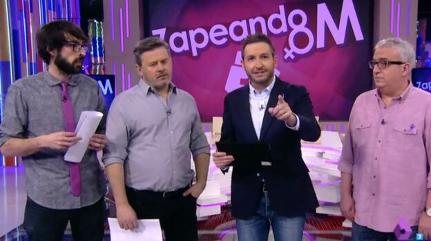 Y es que las zapeadoras estaban en la huelga feminista, luchando por un sociedad más igualitaria en la que las mujeres tengan los mismos derechos que los hombres. "Nuestra misión es apoyarlas", destacó tajante el presentador del programa.