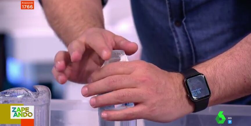 Lorena Castell muestra en Zapeando el último reto viral de Tik Tok en el que solo se necesita: una botella, agua y papel higiénico. Como la zapeadora explica en este vídeo, los pasos a seguir son muy fáciles: solo hay que llenar la botella de cristal, luego colocar un trozo de papel higiénico y dar la vuelta a la botella sin derramar el agua.