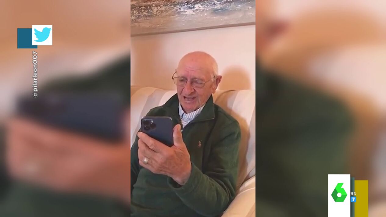 En este vídeo puedes ver cómo una nieta decide dar una emotiva sorpresa a su abuelo, que no puede aguantar las lágrimas al ver la felicitación de su ídolo por su 90 cumpleaños.