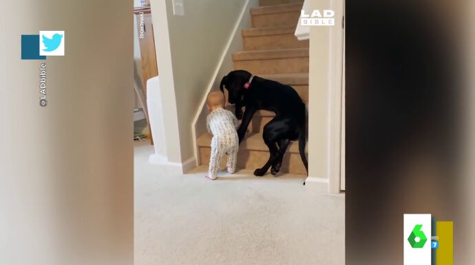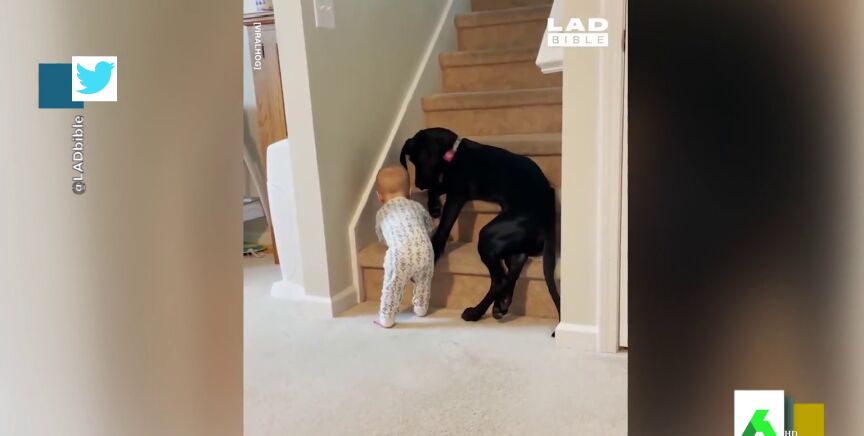 El enternecedor vídeo de un perro cuidando a un bebé: así evita que suba las escaleras