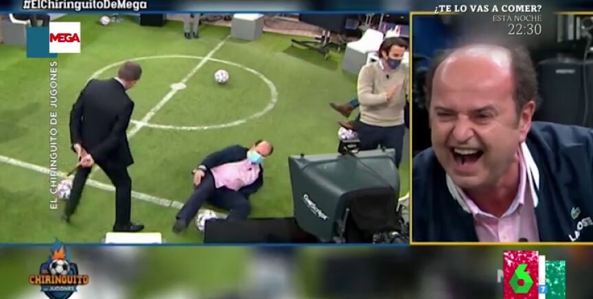 Eso sí, hay un detalle que ha pasado desapercibido para muchos al final del vídeo. Así lo advierte Miki Nadal, quien asegura a sus compañeros que no se están "fijando en lo importante del vídeo": "Atentos al remate que le dedica Cristobal Soria a Juanma cuando éste está en el suelo, y es que le da un balonazo es sus partes", explica el zapeador, que afirma que "le ha dado un golpe a su compañero que le ha hecho crecer las uñas de los pies". "¡Qué feo!", destaca Dani Mateo.