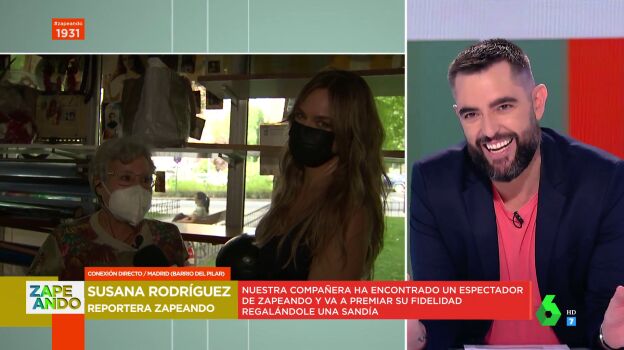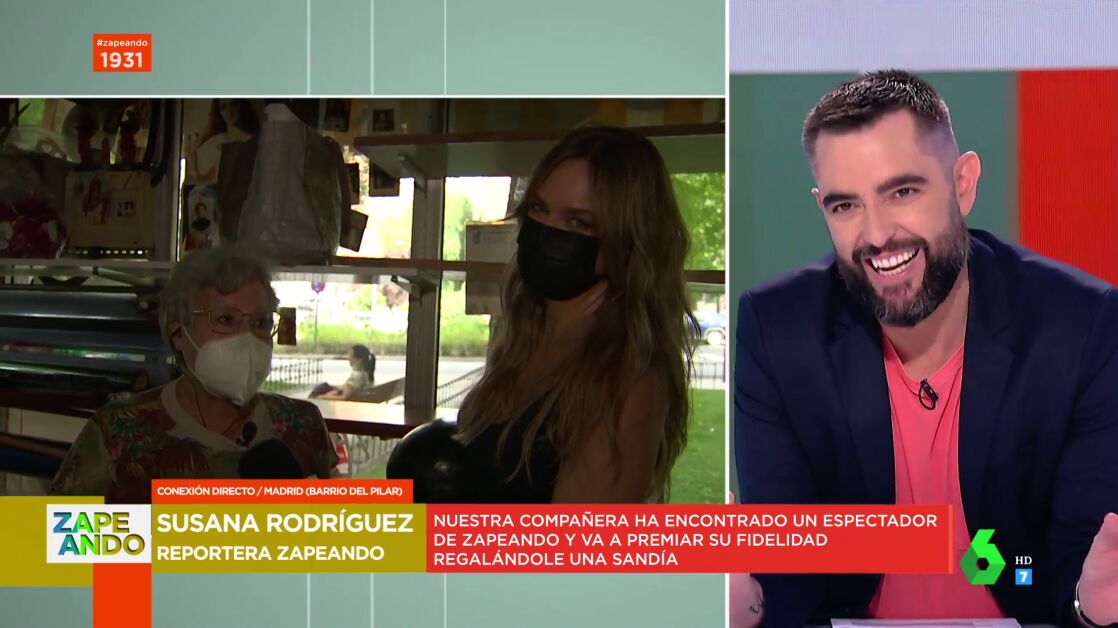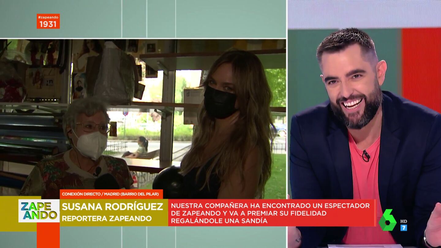 La reportera de Zapeando Susana Rodríguez ha salido a las calles de Madrid para encontrar a un fan del programa que estuviera viéndolo en pleno directo. ¿El premio? ¡Una sandía! Ángela ha sido la afortunada. Y es que la mujer ha salido de su floristería en busca de Susana Rodríguez.