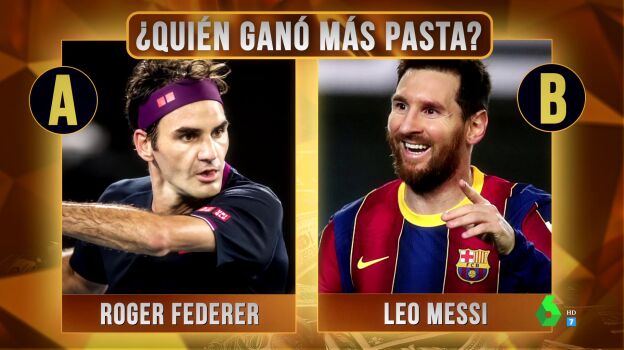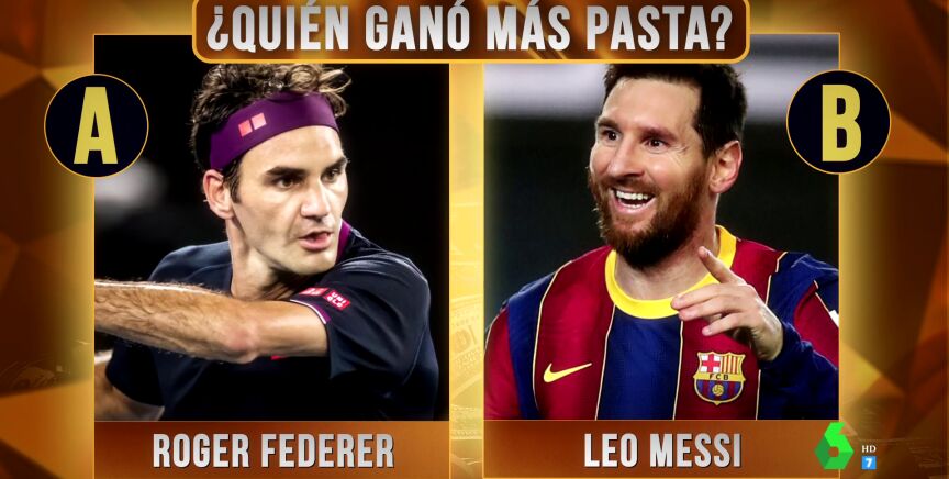 Lo primero que propone el zapeador es adivinar quién gano más dinero, si Roger Federer o Leo Messi. Y lo cierto es que aunque todos apuntaban a Messi, el tenista fue quién ganó más dinero, 87,9 millones, mientras que el futbolista 86. ¿Angelina Jolie o Sofía Vergara? ¿Elton John o J. K. Rowling? ¿Katy Perry o Backstreet Boys? Comprueba con este vídeo si serías capaz de adivinar quién ganó más dinero.