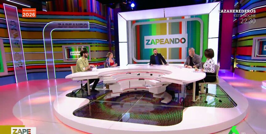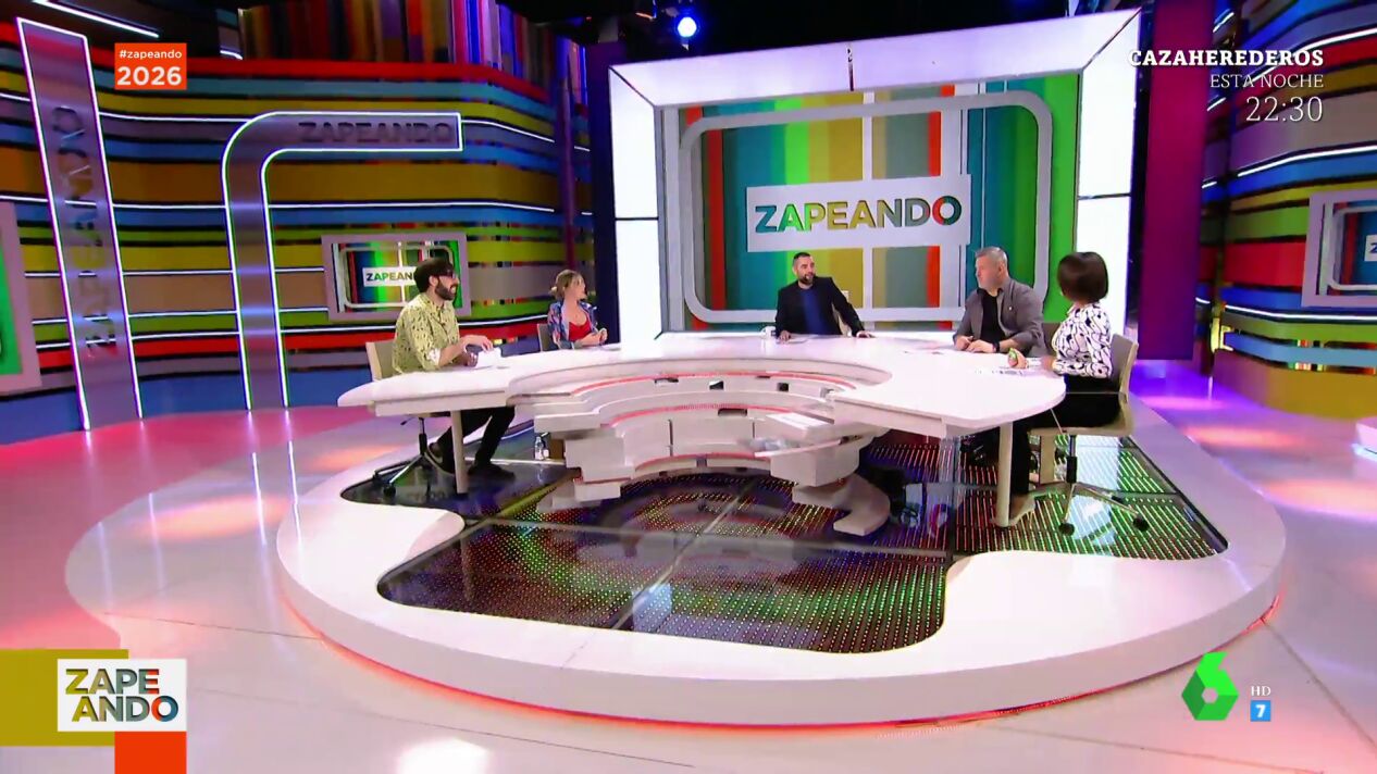 Nada más arrancar Zapeando, Dani Mateo saluda a los zapeadores que se encuentran en la mesa. En ese momento, Dani Mateo presenta de forma diferente a Valeria Ros y Quique Peinado, a un lado de la mesa, de Miki Nadal y Lorena Castell, juntos en el otro lado.