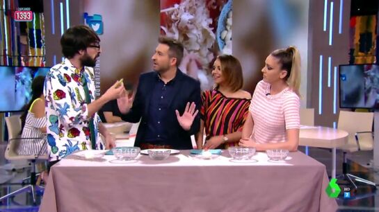 Cuando le ha tocado hacerlo a Quique Peinado ha clavado el cuchillo con tanta fuerza que un trozo ha salido disparado contra Frank. "Me has agredido con un ajo", le ha recriminado el presentador.