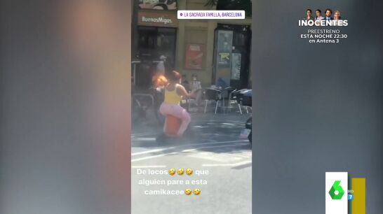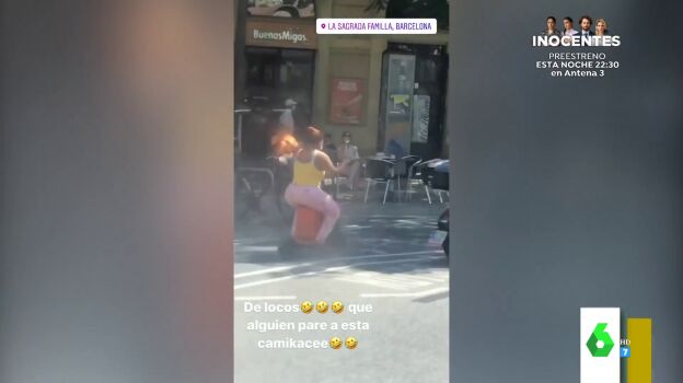 Una joven se ha convertido en protagonista de un vídeo viral después de circular por las calles de Barcelona de la manera más surrealista posible. No te pierdas el vídeo.