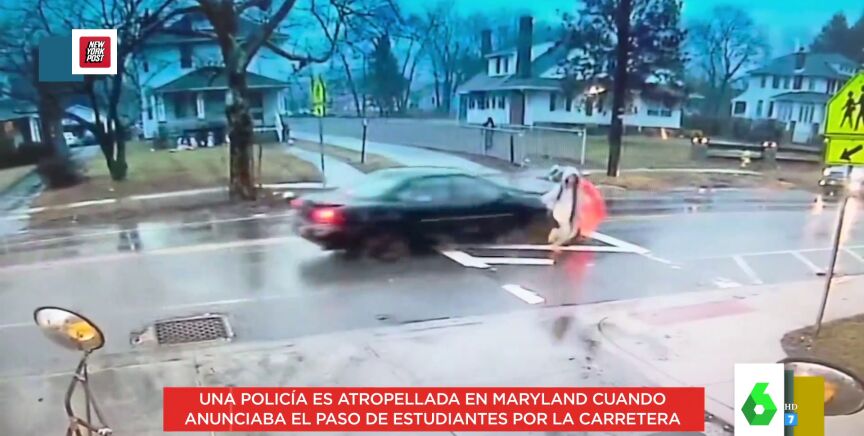 Estados Unidos es un país peligroso, y así lo demuestra el vídeo que presenta Dani Mateo en Zapeando. El presentador avisa de que hay que estar atento por lo que te pueda pasar en una calle cualquiera de Maryland. Por ejemplo, en este vídeo se puede ver cómo una policía está parada en un paso de cebra para avisar a los conductores de que por ese tramo pasan estudiantes. En ese momento, la mujer es atropellada por un coche.