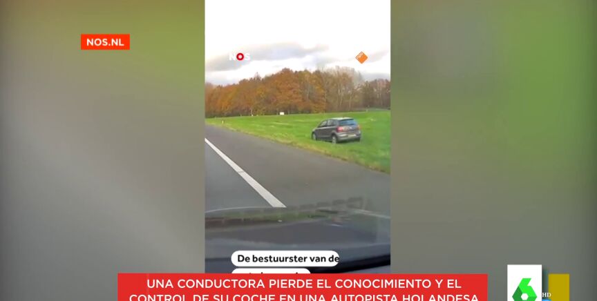 Una mujer ha perdido el conocimiento mientras conducía por una autopista holandesa. Otro vehículo grabó el momento en el que la mujer se salía de la carretera y comenzaba a circular por una zona de cesped, sin conocer lo que realmente estaba ocurriendo.