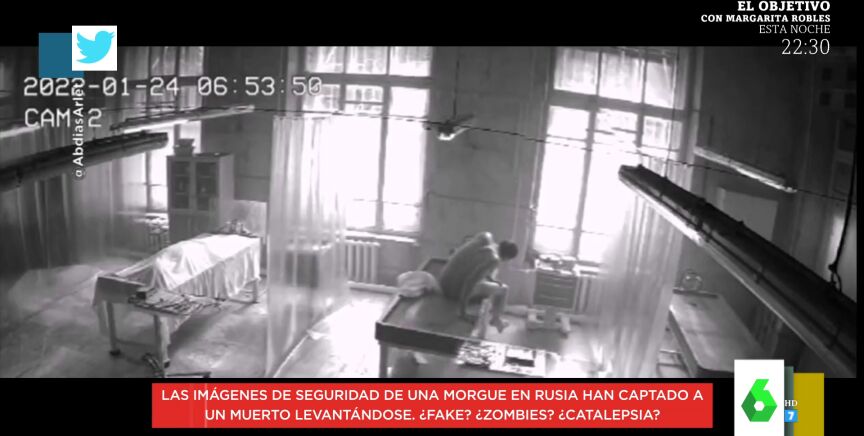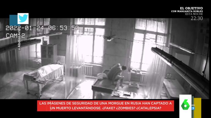 Quique Peinado muestra en Zapeando el vídeo de un hombre que se despierta en mitad de una morgue. El hombre estaba bajo una sábana, como el resto de cadáveres, cuando empieza a moverse. El zapeador alucina con el vídeo, aunque cree que lo raro es que haya una cámara que grabe tan bien al estar colocada en una zona donde hay cadáveres, porque considera que "los muertos de allí no se van a mover".