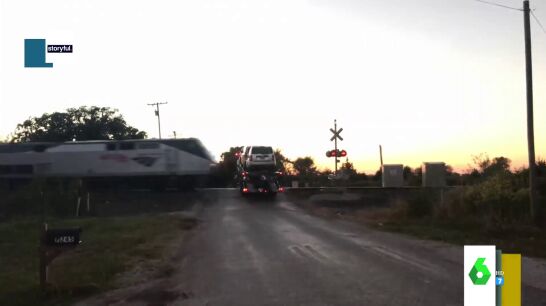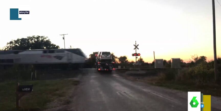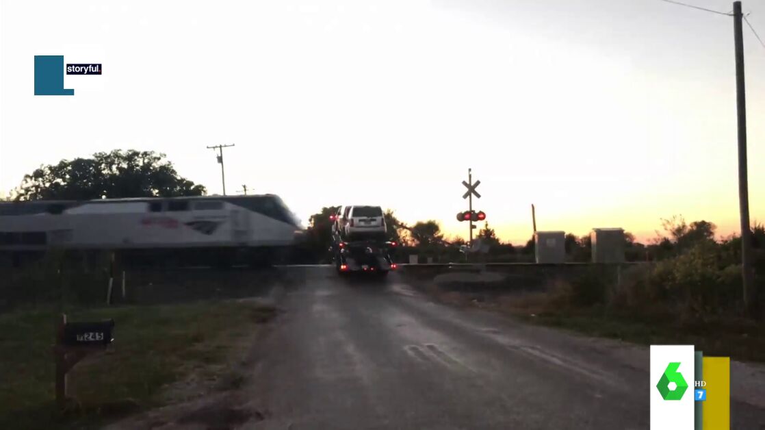 El vídeo muestra las impactantes imágenes de un choque entre un tren que iba a toda velocidad y una grúa cargada de coches. Afortunadamente, pese a la brutalidad del choque, solo ha habido cuatro heridos leves.