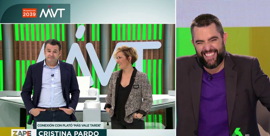 Como cada programa, antes de terminar el directo Dani Mateo conecta con el plató de Más Vale Tarde, desde donde Iñaki López y Cristina Pardo avanzan los temas de los que hablarán en MVT. Pero en este vídeo, los presentadores desvelan algo que nunca han contado: qué es lo que hacen mientras esperan a la conexión en directo.