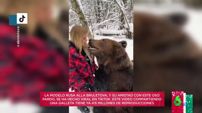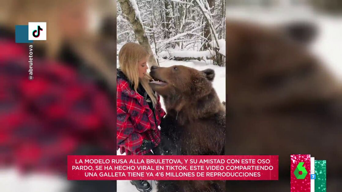 Una modelo rusa se ha hecho viral por su íntima relación con un oso pardo. El animal comparte galletas con la influencer e incluso le sigue sus bailes de tiktok. Pero no todo acaba ahí, los 'tiktokers' hasta comparten sandía.