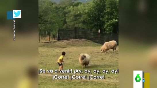 La inesperada reacción de una oveja cuando un niño se acerca hacia ella