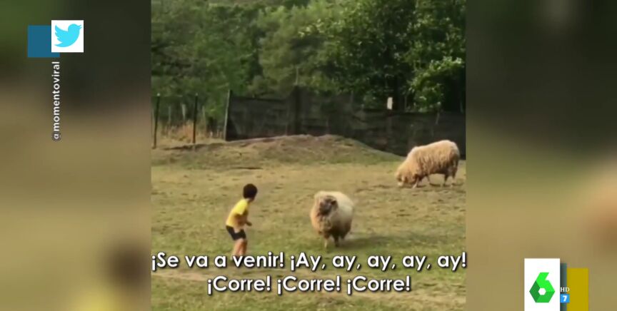 Lorena Castell muestra en Zapeando el vídeo de un niño que se acerca a una oveja y se acaba llevando un susto inesperado. El niño se encontraba en una pradera cerca del animal, cuando sin esperárselo, la oveja empieza a perseguirle.