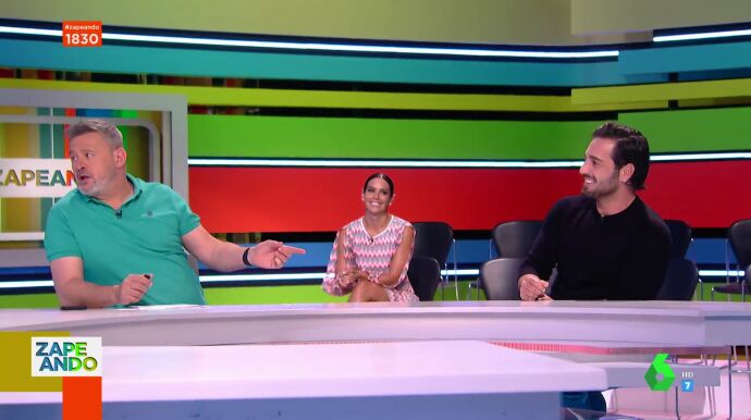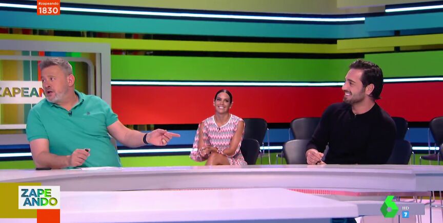 El cantante explica entre risas que Miki Nadal le estaba lanzando pullas ya cuando vio al cantante detrás de cámaras. Un divertido momento al que Dani Mateo se suma bromeando con el potente físico de Bustamante: "Aquí lo vemos claro, un cuerpo y un anticuerpo", destaca el presentador en referencia a Miki Nadal y David Bustamante. Y es que los zapeadores alucinan con el físico del artista. Puedes ver el momento en el vídeo principal de esta noticia.
