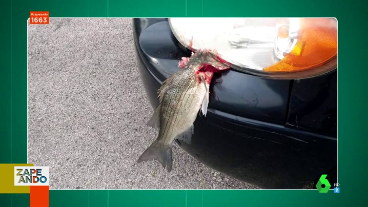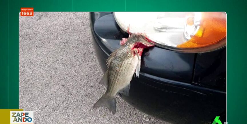 En este curiosa imagen aparece un pez muerto lleno de sangre sobre el capó de un coche. Pero, ¿qué ha pasado? Zapeando lo debate en este vídeo.