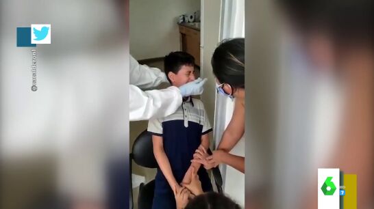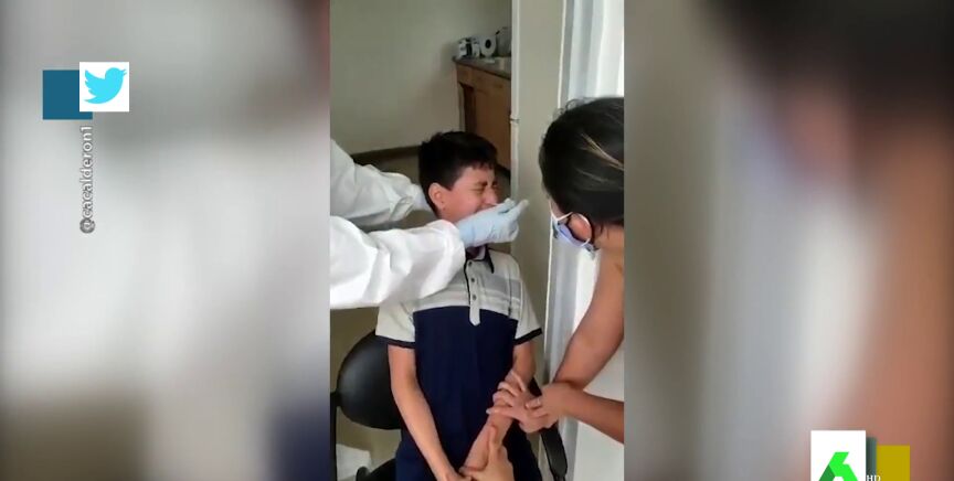 Pero para el joven que protagoniza este vídeo es directamente insoportable, y así lo demuestra cuando el sanitario trata de hacerle la prueba: chilla, grita, se mueve e incluso llora. Las dos mujeres que le acompañan y le sujetan no pueden evitar soltar una carcajada ante tan insólita reacción.