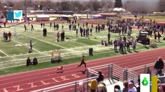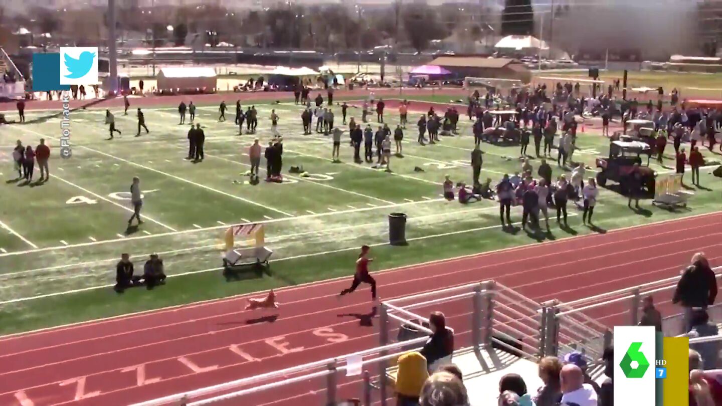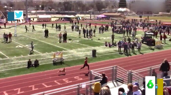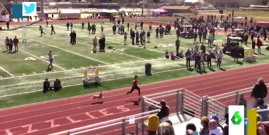 Tal y como se puede ver en el vídeo principal de esta noticia, la carrera fue muy especial. Y es que un perrito se 'coló' en el momento final en plena pista, y consiguió batir todos los récords hasta alcanzar la medalla de oro.