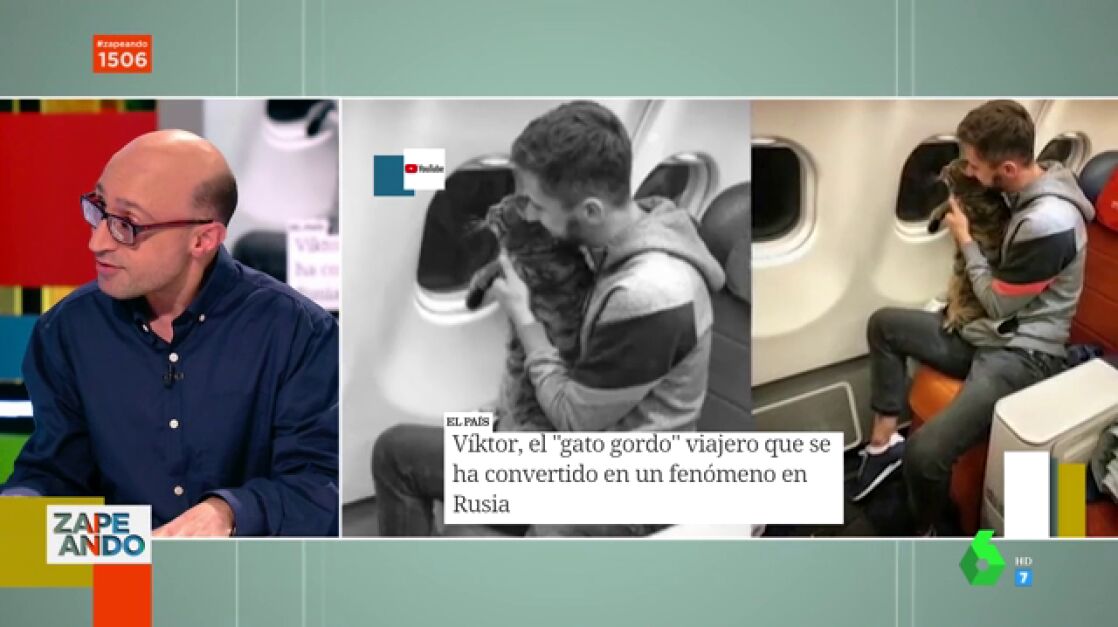 Jesús Vidal ha explicado por qué el gato Víktor se ha convertido en un fenómeno social en Rusia. Y es que su dueño intentó meterlo en el avión, pero le dijeron que excedía el peso permitido para las mascotas. En ese momento, al hombre se le ocurrió la idea de pasar por el control a un gato que pesaba menos y "luego se las arregló para colarlo", ha contado el actor.