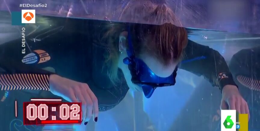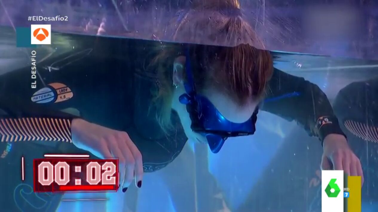 La actriz Kira Miró se enfrentó a la difícil prueba de la apnea en el programa de 'El Desafío' de Antena 3. La concursante no dudó en enfrentarse al reto de permanecer sin respirar bajo el agua más de un minuto y medio, hasta el punto que batió su propio récord para sorpresa de los espectadores, el jurado y el resto de concursantes.