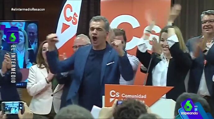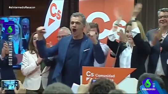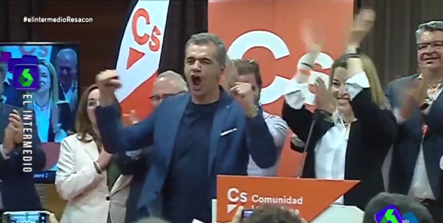 "¡18 diputados!, a uno del PP y por encima de Compromís", así ha celebrado Toni Cantó la tercera posición de Ciudadanos en la Comunidad Valenciana. El momentazo, que te muestra Zapeandoen este vídeo, ya se ha vuelto viral.