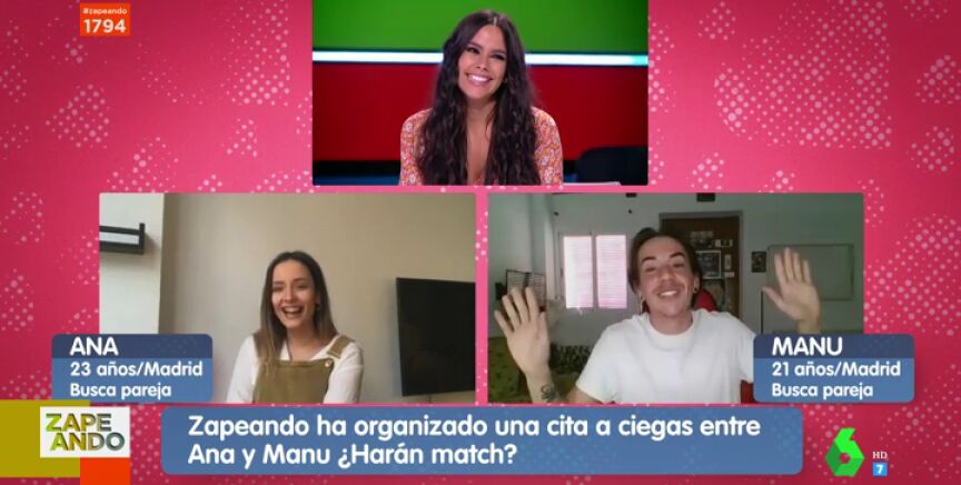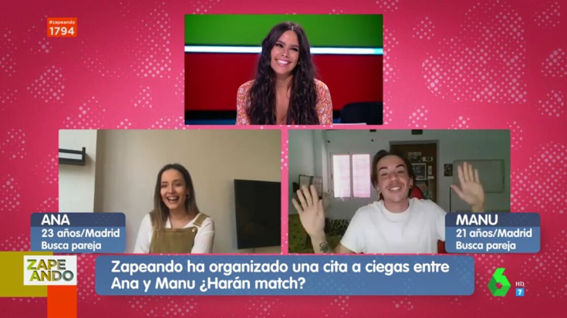 La pandemia ha complicado la vida en muchos sentidos, también a la hora de ligar. Por eso, Zapeando ha organizado una cita a ciegas para ver si surge la chispa entre Ana, una enfermera de 23 años, y Manu, estudiante de 21.