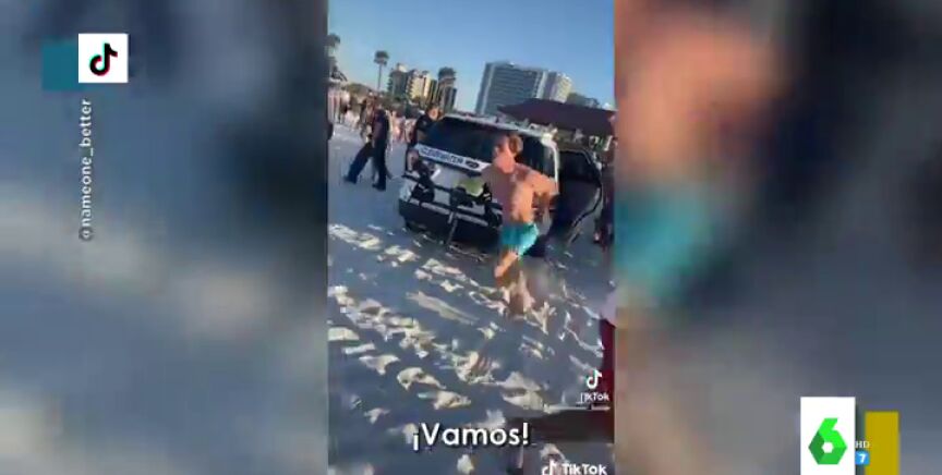 La Policía detuvo al joven ante la atenta mirada de los bañistas. Sin embargo, dejó la puerta del coche patrulla abierta, y el joven no dudó en salir corriendo. Te lo mostramos en Zapeando.